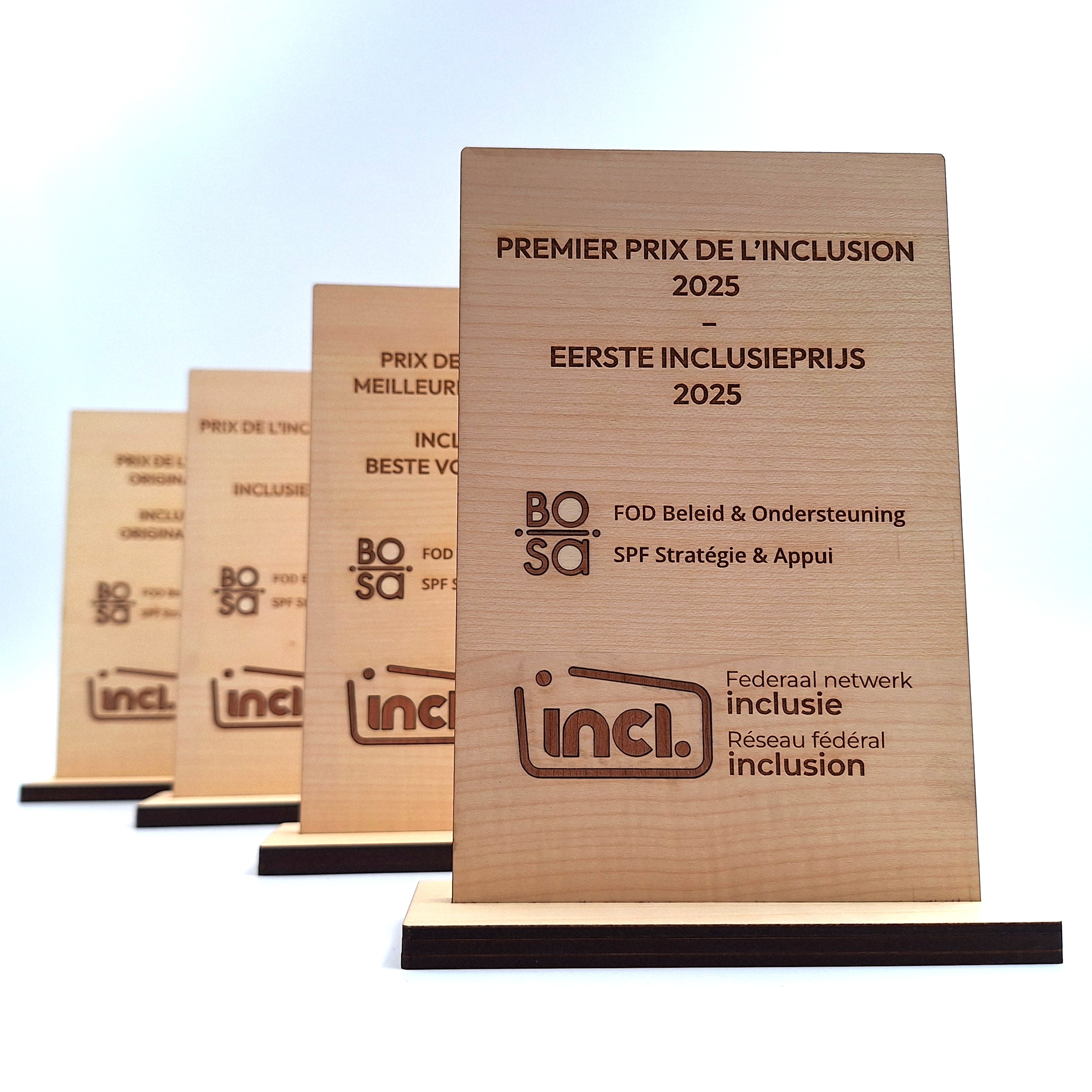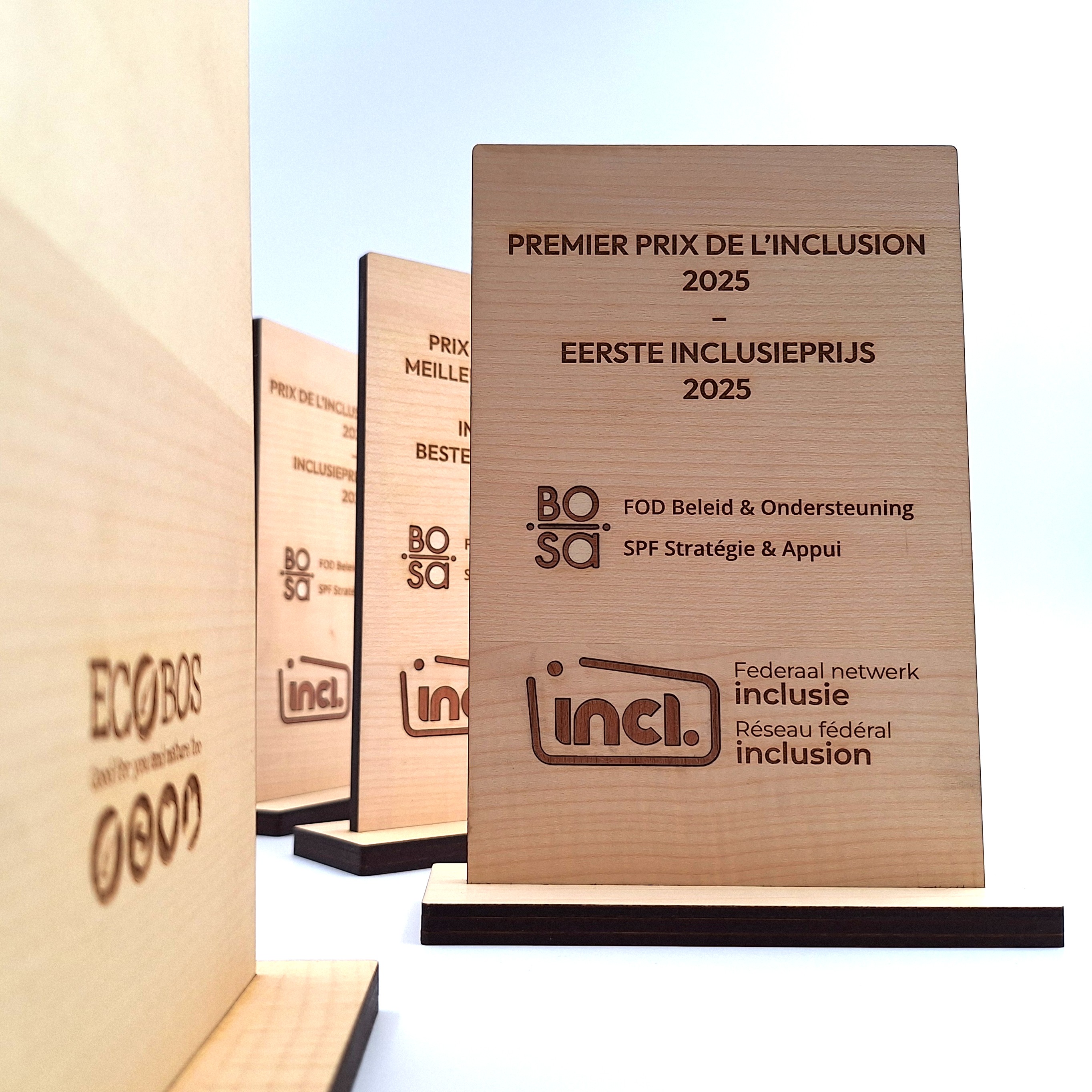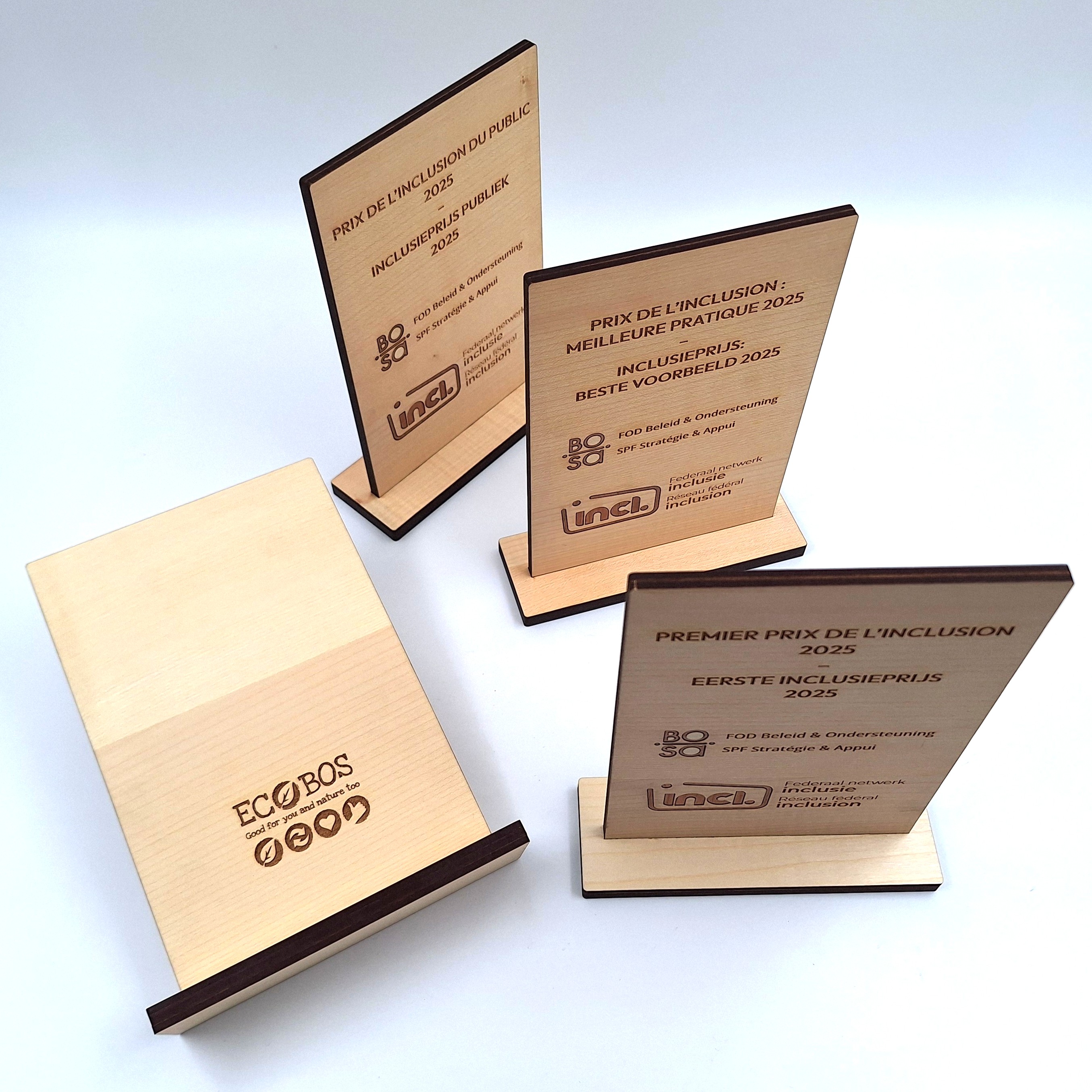 Een houten trofee of award bestellen kan via de webshop of vraag een offerte aan via mail op info@ecobos.be. Gelieve je logo als vectorieel bestand .eps / .svg / .pdf door te sturen. Bij tekst de lettertypes toevoegen of tekst omzetten naar contouren/krommen.