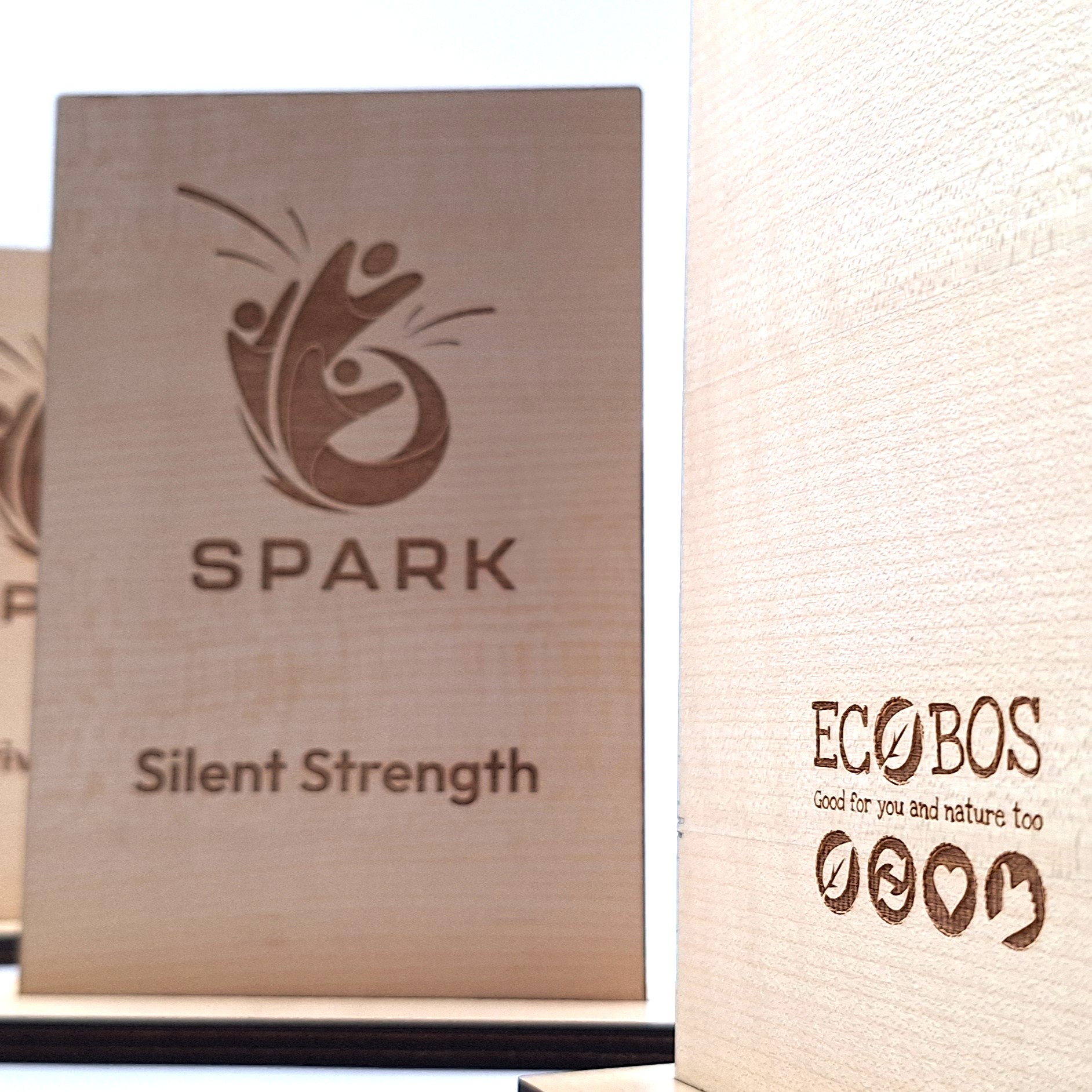 Lasergravure is duurzaam omdat er geen inkt nodig is, de gravure zit in het hout en de energie om te graveren is afkomstig van groene stroom.